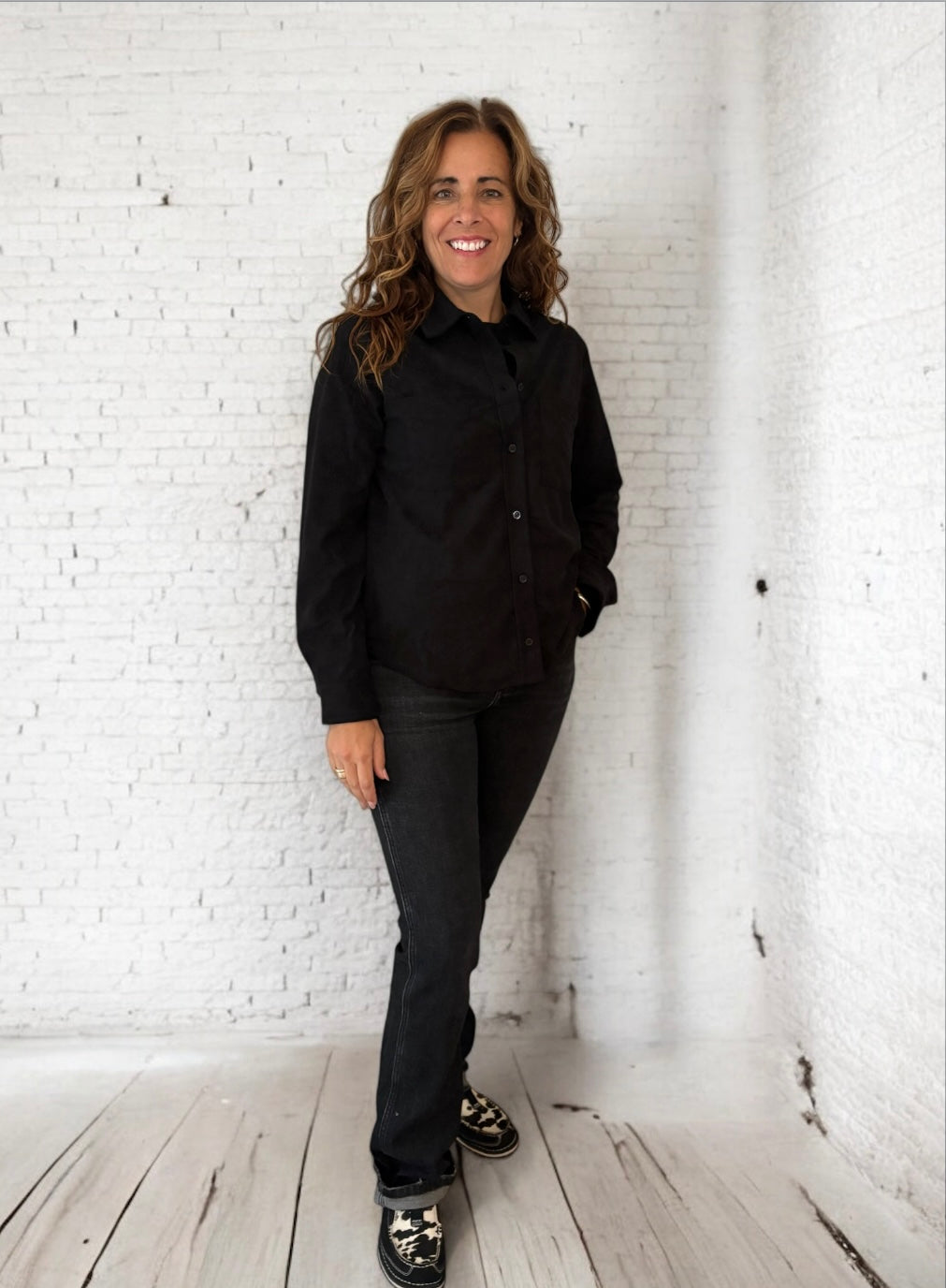 Chemise boutonnée en velours côtelé à manches longues avec poche à l’avant.